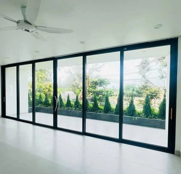 Cửa đi lùa 6 cánh được sử dụng tại những công trình có không gian rộng lớn, nhằm kết nối không gian tối đa, phù hợp cho Villa, Biệt thự, nhà hàng, resort vv…